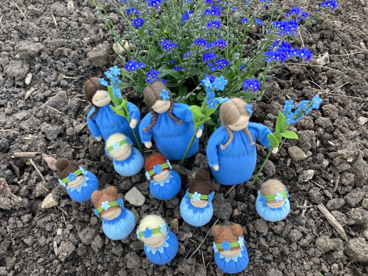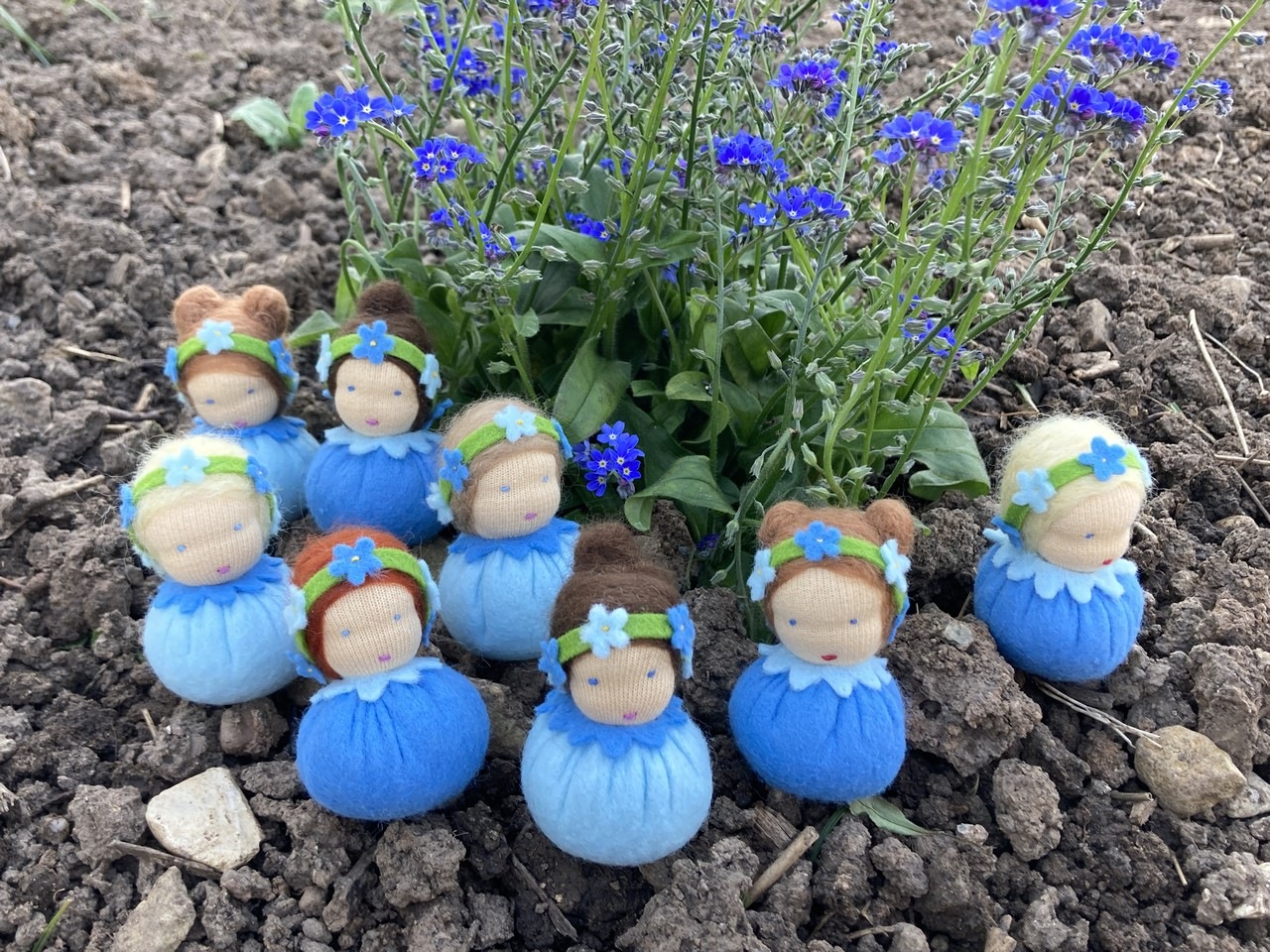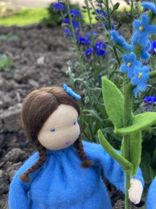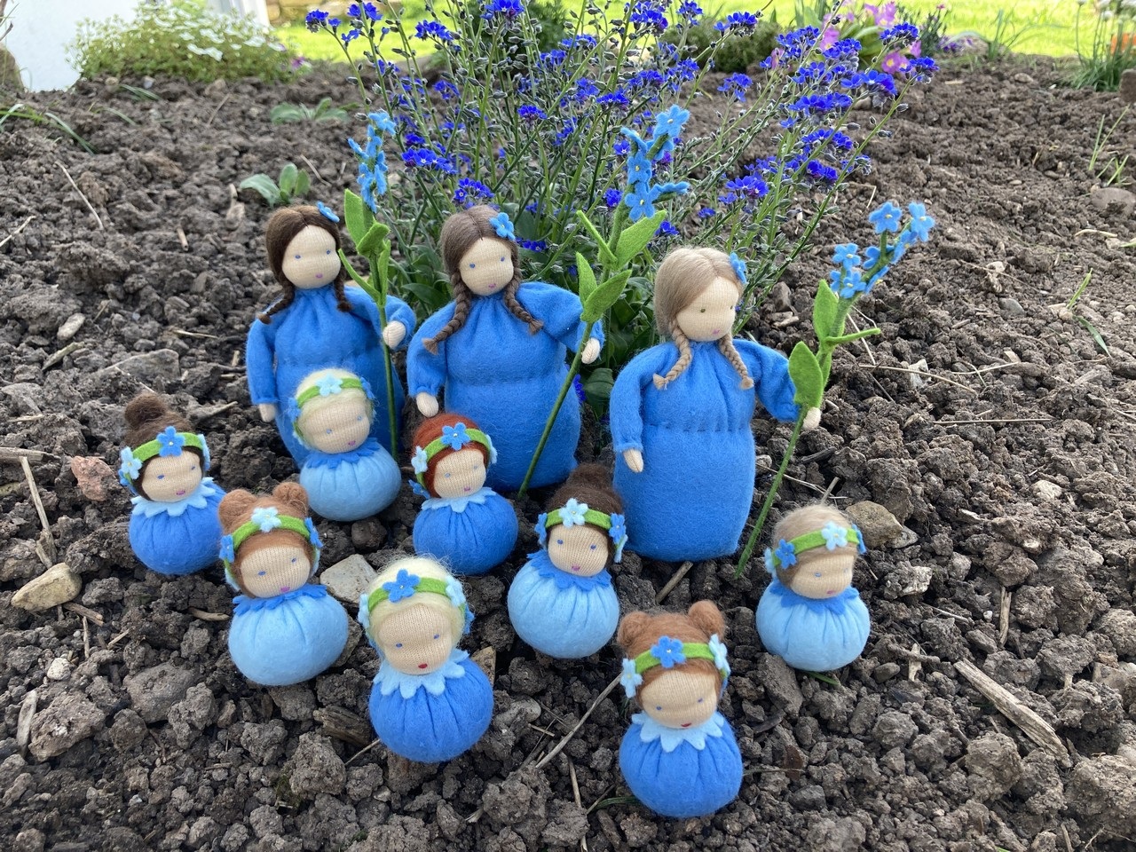 Frühling Vergissmeinnicht Vergissmeinnicht kasuwa Blumenkinder | Handarbeiten | Jahreszeitentische Krippenfiguren | Tiere aus Filz genäht