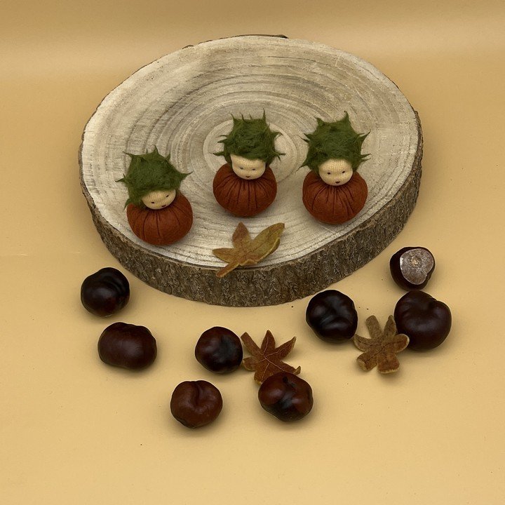 Herbst Kastanien Kastanien ◄ 1 2 kasuwa Blumenkinder | Handarbeiten | Jahreszeitentische Krippenfiguren | Tiere aus Filz genäht